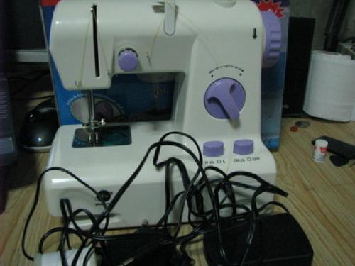 ขายจักรเย็บผ้า ขนาดเล็กใช้งานได้ดีใช้ซ่อมเสื้อผ้าได้หัดเย็บราคา500มีหม้อแปลงแป้นเหยียบใส่ถ่านได้พกพา