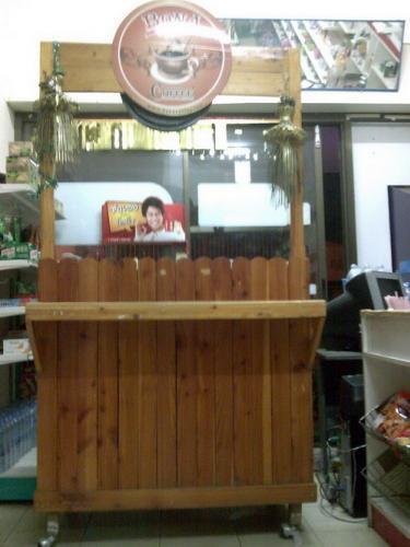 ขายบู๊ท เอาไว้ขายเครื่องดื่ม กาแฟ น้ำปั่น ฯลฯ เป็นไม้สภาพเดิมเหมือนตอนซื้อมาใหม่เลย ขามีล้อเลื่อน ใช้ขายมาได้แค่ 2 เดือน แล้วก็ยกเก็บไว้เฉย ๆ
