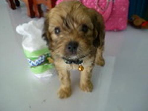 สุนัขแข็งแรงดีค่ะ เจ้าของเดิมบอกว่าพันธุ์เทอร์เรีย ตัวผู้ อายุประมาณเกือบสองเดือน สีน้ำตาล