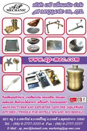 ขายและรับสั่งทำสินค้า เป็นโต๊ะอาหาร ถ้วย ชาม ถาด แก้วน้ำ เหยือกน้ำ ที่ทำมาจากทองแดง ทองเหลือง สแตนเลส และรับสั่งผลิต ตามตัวอย่างลูกค้า ตามไอเดียลูกค้า ทำด้วยมือ