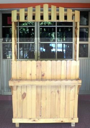 เคาน์เตอร์ไม้ ขนาด 1 เมตร มีโครงด้านบนให้ติดป้ายชื่อร้านได้ มีช่องใส่ของสามารถล็อคได้
