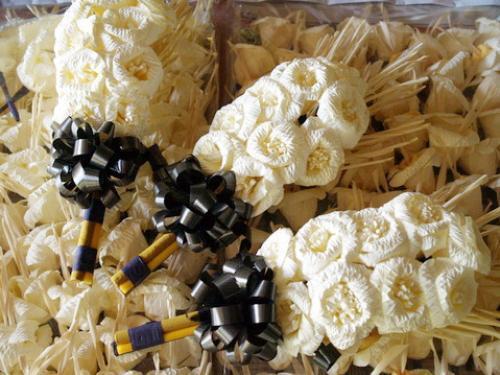 จำหน่ายอุปกรณ์ทำดอกไม้จันทร์ ครบวงจร มีทุกอย่าง ครบครัน ขายปลีก - ส่ง อาทิเช่น กลีบดอก (มีหลายแบบ/สี) หนวด (มีทุกสี) กระดาษดำ เทียนจิ๋ว ธูป ฯลฯ