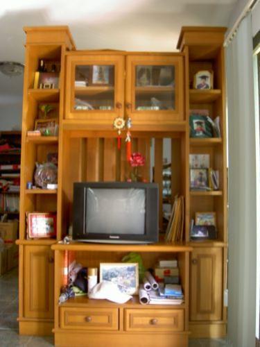 ตู้โชว์ไม้สัก วางทีวีได้ กว้าง 1.50 เมตร สูง 2.50 เมตร สีธรรมชาติ