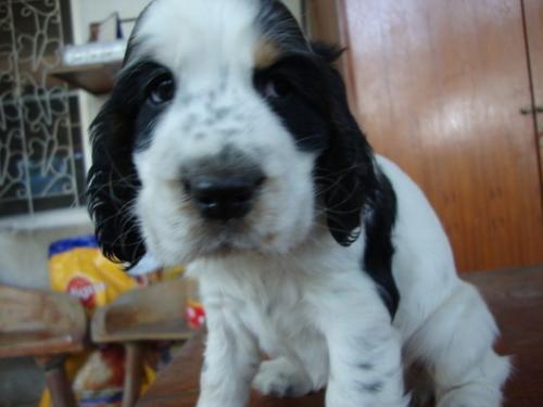ขายลูกอิงลิชคอกเกอร์พันธ์แท้ สามสี พื้นขาวแต้มดำและแต้มน้ำตาลที่หัวคิ้วและปาก น่ารักมากๆ