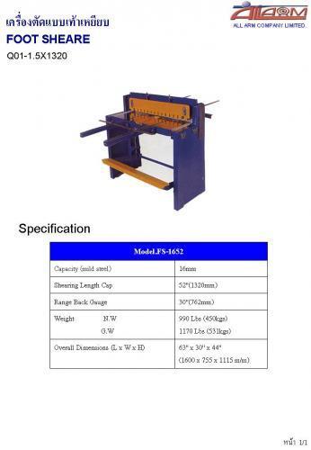 ขายเครื่องตัดแบบเท้าเหยียบ ขนาด 1320 มม. หนา 1.5 มม.