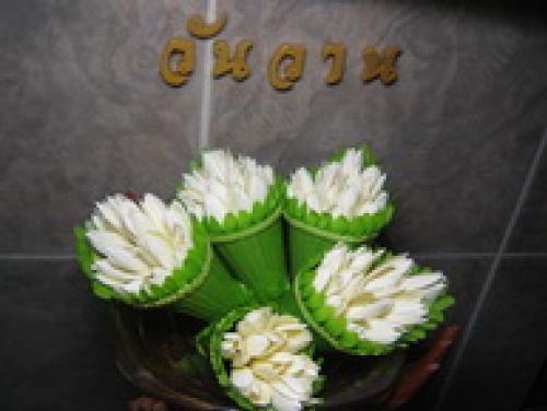 ดอกจำปีอวบสิบดอกในกรวยใบตองถักตะขาบรอบกรวยปั้นด้วยมือทั้งชิ้นจากดิน ญี่ปุ่นสวยปราณีตเหมือนจริงจนต้องดอมดมเมื่อได้กลิ่นคุณจะรู้ว่านี่แหละของ คู่ควรที่คุณต้องการมอบให้คนที่คุณรัก