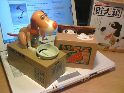 น้องหมากินเหรียญ สำหรับใครที่กำลังมองหา Gadget น่ารักๆ แถมยังมีประโยชน์ฝึกให้เด็กๆ รู้จักเก็บออมต้องนี่เลย Choken-Bako กระปุกออมสิน"สุนัขไฮเปอร์"ที่รอเด็กๆ ให้อาหารตลอดเวลา โดยของโปรดของมันก็คือเหรียญเศษสตังค์ สำหรับค่าขนมของเด็กๆ ที่เหลือจากโรงเรียนนั่นเอง ทันทีที่คุณวางเศษสตังค์ลงในชามใส่อาหาร เจ้า Choken-bako จะก้มหน้าก้มตากินอาหารที่อยู่ในชามอย่างเอร็ดอร่อย จนกว่าเหรียญจะหมด ซึ่งความจริงก็คือ ไหลลงไปในช่องที่อยู่ก้นชามและล่วงลงไปในกล่องเก็บด้านล่าง