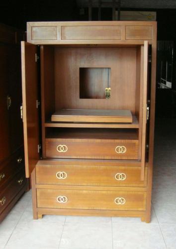 ตู้วางทีวีไม้อัดสัก ขนาดกว้าง 1 เมตร สูง 1.6 เมตร มีฝาปิดพร้อมถาดวางทีวีเลื่อนเข้าออกได้
