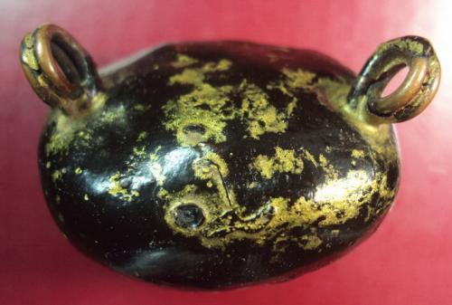 อาจนำแผ่นโลหะรองอีกชั้นแล้วลงอักขระถักเชือกหุ้ม ลงรัก