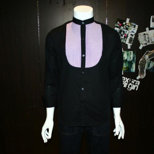 เสื้อเชิ๊ตสุภาพบุรุษ size M สีดำ พาดสีเทาตรงกระดุม กับแขนสองข้าง