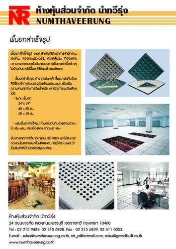พื้นยกสำเร็จรูป จัดจำหน่ายโดย ห้างหุ้นส่วนจำกัด นำทวีรุ่ง พื้นยกใช้สำหรับห้องคอมพิวเตอร์ ห้องคลีนรูม อาคารสำนักงาน มีใบรับประกันว่าเป็นสินค้าที่ได้มาตราฐาน ขายมายาวนาน ติดตั้งโดยทีมงานที่เชี่ยวชาญ มีประสบการณ์ในการติดตั้งมากกว่า 20 ปี