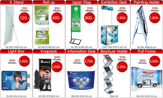 โรงพิมพ์ ทำถูก อุปกรณ์ออกบูธ Roll up,x stand,pop up,display ป้าย งานพิมพ์ สิ่งพิมพ์ exhibition