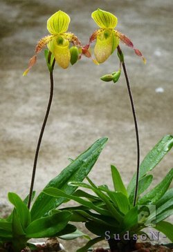 เป็นลูกผสมระหว่างรองเท้านารีพิมูไลเมียนุ่มและฟิลิปปินส์ให้ดอกสีเหลืองและออกเป็นช่ออาจจะได้ห้าถึงเจ็ดดอกในช่อเดียวครับ
