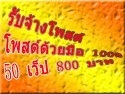 รับจ้างโพส โพสด้วยมือ 100% สูงสุด 50 เว็ป/ วัน เพียง 800 ฿