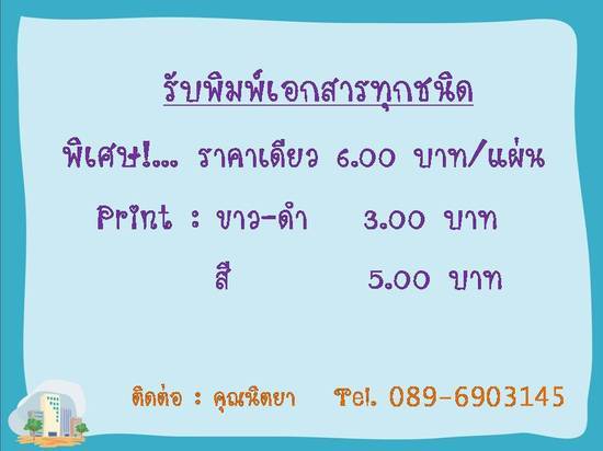 รับจ้างพิมพ์งานทุกประเภท ราคาเดียว 6 บาทต่อแผ่น