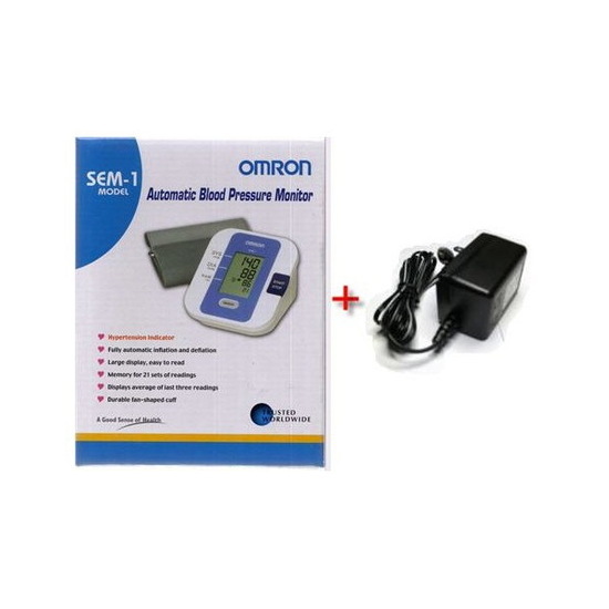 เครื่องวัดความดันโลหิตและชีพจรแบบดิจิตอล ยี่ห้อ Omron รุ่น sem-1 + Adaptor omron แท้ และเครื่องวัดปริมาณแคลอรี่แบบนับก้าว รุ่น HJ-109 ฟรี