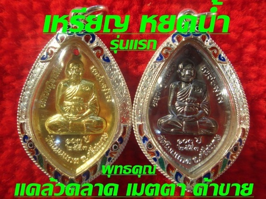 เหรียญหยดน้ำ หลวงปู่เกลี้ยง วัดบ้านโนนแกด สร้าง พ.ศ.๒๕๕๓ มี ๓ เนื้อ ด้วยกัน เนื้อเงินนั้นคงหาไม่ได้แล้ว ตะกั่ว ก็สร้างเพียง ๕,๐๐๐ เหรียญ กะไหล่ทอง อีก ๒๐,๐๐๐ เหรียญ เนื้อ ตะกั่ว เช่า/บูชา ๙๙๙ บาท เนื้อกะไหล่ทอง เช่า/บูชา ๔๙๙ บาท บล็อคแรก ตอกโค็ด ถ้าไม่มีโค๊ด คือบล็อค ๒ นะครับ