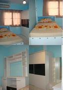ชั้นบน เตียงนอน ที่นอน ตู้เสื้อผ้า ตู้เครื่องแป้ง ตู้วางทีวี แอร์ มีทั้ง 3 ห้องนอน