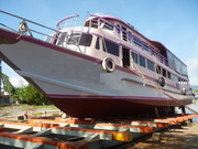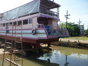 เรือท่องทะเล ขนาด 180 ที่นั่ง กว้าง 4.50 x 26 เมตร เครื่องยนต์ cummins B/C 2 เครื่อง ขนาด 350-400 แรง เกียร์ T/D 514 อเมริกา ไม้ตะเคียนทอง น็อต สแตนเลสทั้งลำ ไม่ตอกหมัน ต่อที่ส.พิทักษ์ บ้านแพ อยุธยา มี2ชั้น karaoke เครื่องเสียง ลำโพง12 ตัว