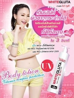 โลชั่นบำรุงผิวขาวใส พร้อมกันแดดสไตส์ สาวเกาหลี เปลี่ยนผิวกายให้สว่าง กระจ่างใสได้ในพริบตา! เพียงแค่ทาเท่านั้น ไม่ว่าจะใส่ชุดไหนๆ จะใส่สายเดี่ยว ขาสั้นรับซัมเมอร์ ท้าแดด ท้าลม หรือจะแต่งชุดสวย ออกงานหรูหรา ไฮโซ ก็มั่นใจ๊ มั่นใจ... กระจ่างใส ชุ่มชื้น นุ่มนวล น่าสัมผัส ทาวาเลน ไวท์ กลูต้า 3 วิ เท่านั้นค่ะ!^^