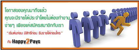 นี่คือตัวอย่างสมาชิกใต้สายงานของดิฉัน ในเวลา 1เดือน โอกาสธุรกิจยังกว้างได้ เพราะ ธุรกิจ happy2pay เพิ่งเปิดให้บริการเมื่อวันที่ 7 มีนาคม 2555 แบบเต็มตัวเท่านั้น ปัจจุบันยังมีสมาชิกไม่ถึง 1000 คน ทำให้โอกาสในการแนะนำธุรกิจหรือขยายตลาดยังกว้างมาก คุณจะเป็นคนที่ทำแรกๆ Happy2pays สมัครฟรี 7 วัน ธุรกิจนี้ยอมให้คุณสมัครเข้าไปศึกษาระบบทั้งหมดได้ทางอินเตอร์เน็ต ว่าระบบสามารถทำอะไร ได้บ้าง โดยคุณไม่ต้องจ่ายเงินสักบาทเดียว