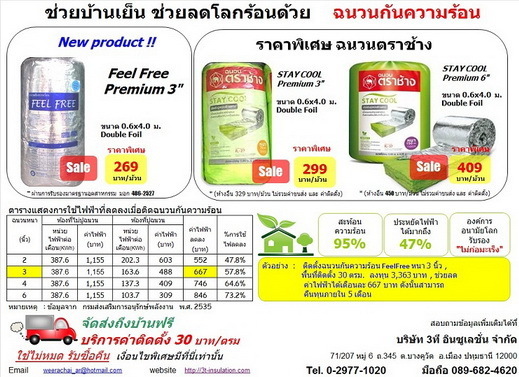 · ฉนวนกันความร้อนตราช้าง เช่น ฉนวนใยแก้ว , STAY COOL , ฉนวนซับเสียง CYLENCE