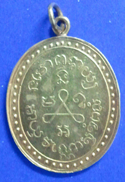 ส่วนพิมพ์ด้านหลังสร้างเป็น ยันต์สาม ล้อมรอบยันต์ด้วยหัวใจธาตุคือ นะ มะ อะ อุ และหัวใจพระเจ้าห้าพระองค์ คือ นะ โม พุท ธา ยะ อักขระด้านล่างเป็นพระคาถาอำนวยพรคือ อายุ วัณโณ สุขัง พะลัง