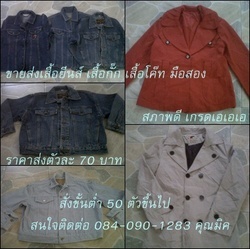 ขายส่งเสื้อยีนส์ เสื้อกั๊ก เสื้อโค๊ท มือสอง สภาพ AAA ราคาส่งตัวละ 70 บาท สั่งขั้นต่ำ 50 ตัวขึ้นไป เสื้อผ้าของเราคัดมือต่อมือ ไม่มีการหยัดใส้ สนใจติดต่อ 084-090-1283 มิกครับ