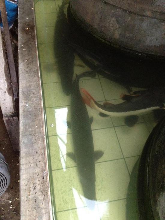 ปลามี 2 ตัว ขนาดใกล้เคียงกัน ปลาความยาว 1 เมตร และ 1.10 เมตร ขายตัวละ 3000 ราคาต่อรองได้ครับ
