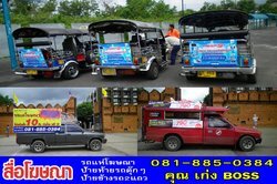 สื่อท้ายรถตุ๊กๆ ป้ายท้ายรถตุ๊กๆ สื่อติดรถสองแถว ป้ายข้างรถสองแถว (081-8850384 คุณเก่ง)