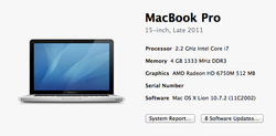 | ยี่ห้อ: | Macbook pro | รุ่น: | 15-Inch i7 2.2GHz 4GB 2012 |