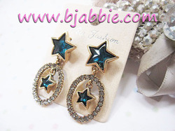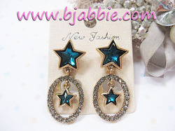 ต่างหูแฟชั่นเกาหลี ดาวคริสตัลสีน้ำเงินห้อยตุ้งติ้งทรงรีประดับเพชรขอบสีทองรมดำ สวยเก๋มาก ๆ ค่ะ