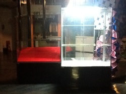 แบบที่ 2 เป็นตุ้กระจกขนาดใหญ่สูง2เมตร กว้าง 1.3เมตร มี3 ขั้นข้างล่างของตู้สามารถเก็บสินค้าได้พร้อมกุญแจล็อค มีหลอมไฟนีออนติดตั้งเรียบร้อย มี1 ตู้ ราคา 12,000 บาท