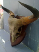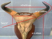 เขากระทิงติดกระโหลกพร้อมแป้นไม้ สภาพ90% ฟอร์มเขาสวยมากๆ(โค้งมาด้านหน้า) และมีความสมดุลกันทั้ง 2 ข้าง เหมาะกับนักสะสมหรือประดับตกแต่งบ้านเสริมบารมี และป้องกันภยันตรายต่างๆ ตามความเชื่อของคนไทย