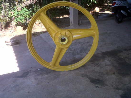 ล้อแม็กเอนไก 3 ด้าน สีเหลืองพร้อมใส่ เวฟ ได้เลย ราคา 5000 บาทครับ