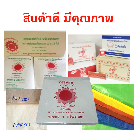 กระดาษทำโคม,กระดาษทอฟฟี่,กระดาษเคลือบ,กระดาษห่อโรตี,กระดาษลอกลาย,กระดาษรองเค้กมกระดาษห่อของและกระดาษทุกชนิดที่ใช้บรรจุภัณฑ์และอุตสาหกรรมต่างๆ สนใจอ่านรายละเอียดเพิ่มเติมได้ที่ www.sun-paper.org