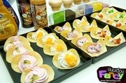 :: รูปภาพประกอบโฆษณา (คลิ๊กที่ภาพเพื่อดูภาพขยาย) :: รายละเอียดหลักสูตร Lekcooking เปิดอบรมหลักสูตรขนมเบื้องแฟนซี ราคาค่าเรียนคนละ 3,500 บาท คุณจะได้ลงมือปฏิบัติจริงในทุกๆขั้นตอน ตั้งแต่การทำแป้งขนมเบื้อง การตีครีมไม่ให้คาว รวมถึงแนะนำวิธีการทำครีมแฟนซี การทำไส้ ทั้งไส้หวานใบเตย ไส้เค้มกุ้ง สอนทำฝอยทอง สอนวิธีการทาครีม สอนเทคนิคการหมุนแป้งให้หมุนได้ง่ายขึ้น การันตีว่าเรียนจบแล้วสามารถเปิดร้านขายได้ทันที จากคุณครูผู้มีประสบการณ์เปิดร้านนานกว่าหลายสิบปี ต้นทุนในการเปิดร้านต่ำ แต่กำไรค่อนข้างสูง ขั้นตอนการทำไม่ยุ่งยาก จะทำทานเองก็ง่ายสะดวก จะเปิดร้านขายก็ได้กำไรเกินเท่าตัว ด้วยต้นทุนต่อชิ้น ไม่ถึงบาท ราคาขายต่อชิ้นตกอยู่ที่ 2-3 บาท ถ้าชิ้นใหญ่หน่อยก็ 5 บาท หรือขึ้นอยู่กับสถานที่ตั้งร้าน เคยเห็นในห้างๆนึงขายถึงชิ้นละ 10 บาท แถมคนยังซื้อกันเพียบ โอ้โห กำไรเกิน 100% เลย เงินงทุนเพียงไม่กี่สิบบาทต่อกิโล ขายได้กำไรต่อกิโลหลายร้อยบาทเลยนะ ถ้าขยันอดทนหน่อย วันๆนึงก็ขายได้กำไรเพียบ ตีไปต่ำๆขายได้กำไรวันละ 500 บาท เดือนๆนึงจะได้ 500บาท*30วัน เท่ากับ 15,000 บาทแล้ว เพราะคนให้ความสนใจรวมถึงความต้องการเยอะ ยึ่งถ้าร้านเรามีอะไรแปลกๆดึงดูดลูกค้าหน่อย อย่างมีครีมแฟนซีหลากสี ไว้ดึงดูดลูกค้าอย่างเด็กๆ แล้วล่ะก็ ขายดีชัวร์