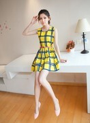 รหัส NKdr 14 : เดรสแขนกุดลายสก๊อต ผ้าป่าน พร้อมเข็มขัด