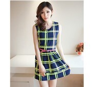 รหัส NKdr 14 : เดรสแขนกุดลายสก๊อต ผ้าป่าน พร้อมเข็มขัด
