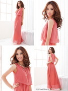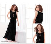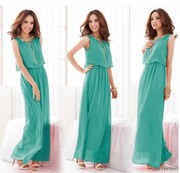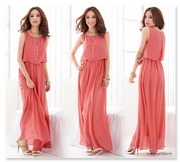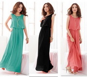 2ชิ้นฟรีฟส่ง107375เดรสยาว ผ้าชีฟอง แขนกุด ยางยืดเอวมีซับใน มี3สี