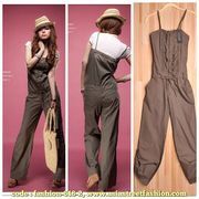 jumpsuit ชุดเอี๊ยมกางเกง สีน้ำตาล ใส่ทำงาน เที่ยว พร้อมส่ง