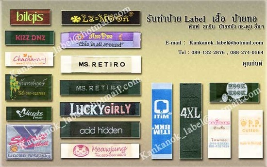 รับทำป้ายลาเบล ป้ายคอเสื้อ ป้ายแบรนด์เสื้อผ้า ตราเสื้อ โลโก้เสื้อ ติดต่อคุณกันต์