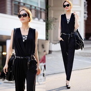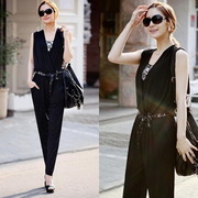2ชิ้นฟรีส่งbk00562ชุด Jumpsuit กางเกงขายาวเกาหลี แขนกุด ผ้าลื่นๆ