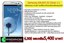 - Samsung galaxy S3 Clone Dual Core 1.4 GHz, Ram 512 GB, กล้อง 8 ล้าน!!
