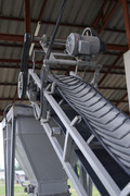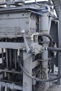 2. สายพานลำเลียงยาว 6 เมตร (มอเตอร์ 2 HP) 3. ยุ้งพักวัตถุดิบขนาดใหญ่ 4. เครื่องผลิตอิฐบล็อกไฮดรอลิกส์ 4 ก้อน (มอเตอร์ 10 HP) 5. ถังน้ำมันและปั๊มไฮดรอลิกส์ (มอเตอร์ 5 HP) 6. ขากลับอิฐ (2 ตัว)