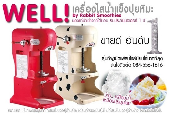ขายเครื่องไสน้ำแข็งเกล็ดหิมะ WELL! นำเข้าจากไต้หวันแท้ รับประกัน 1 ปี ราคาถูก สนใจติดต่อ 084-556-1616 http://www.facebook.com/rabbitsmoothies