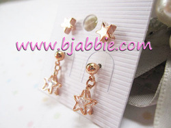 ต่างหูแฟชั่นเกาหลี set 2 คู่ ดาวสี pink gold , ดาวลายฉลุประดับคริสตัลใส สวยน่ารักมากค่ะ