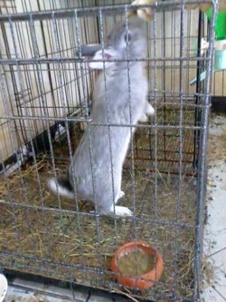 เพศผู้ (สีเทา ที่ยืนอยู่ในกรง) อายุ 1 ปี ดื้อ ซน พลังงานเยอะมาก ND เกรดเลี้ยงเล่น