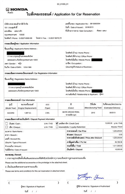 ต้องการขายใบจองรถ Honda all new accord 2013 รุ่น 2.0 ELสีขาวออคิด(มุก) ได้รับรถเดือน สิงหาคม 2556 ออกรถที่ศูนย์สาทร ราคารถ 1,299,000บาท ค่าสี White Orchid Pearl เพิ่มเงินอีก 12,000 บาท