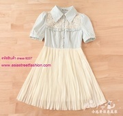 เสื้อผ้าแฟชั่นนำเข้า : Cherry dress ชุดเดรสแฟชั่นเกาหลี แขนกุด ใส่ทำงาน ผ้าลูกไม้ตัดต่อผ้าชีฟอง สีเบจ จั้มเอว กระโปรงอัดพลีท ซับในเต็มตัว พร้อมเชือกผูกเอว สามารถใส่ออกงานได้ สวยมากๆ ค่ะ Asia Street Fashion (พร้อมส่ง)